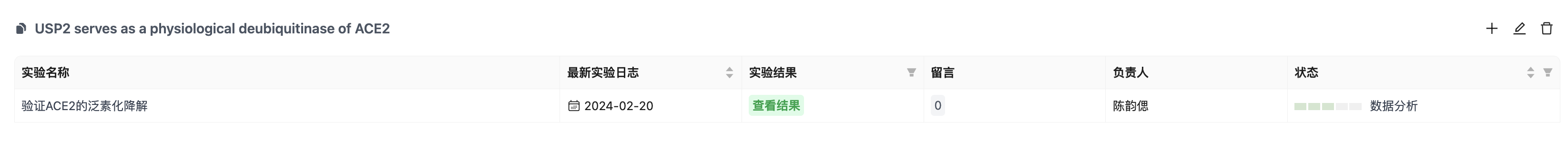 课题 - 模块 - 实验 的结构管理,实验进度、日志记录等一目了然。