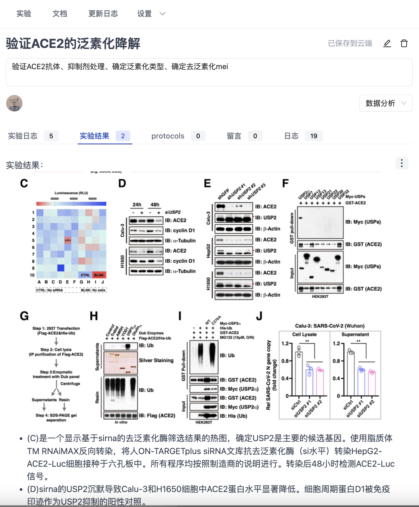USP2作为ACE2的生理去泛素化酶 为例,可以查看其包含的实验